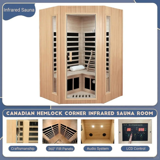 2-3 Person Infrared Sauna, Far Infrared Saunas for Home Low EMF Indoor Home Sauna Spa, Hemlock Wooden Corner Sauna Room